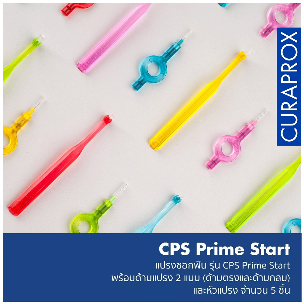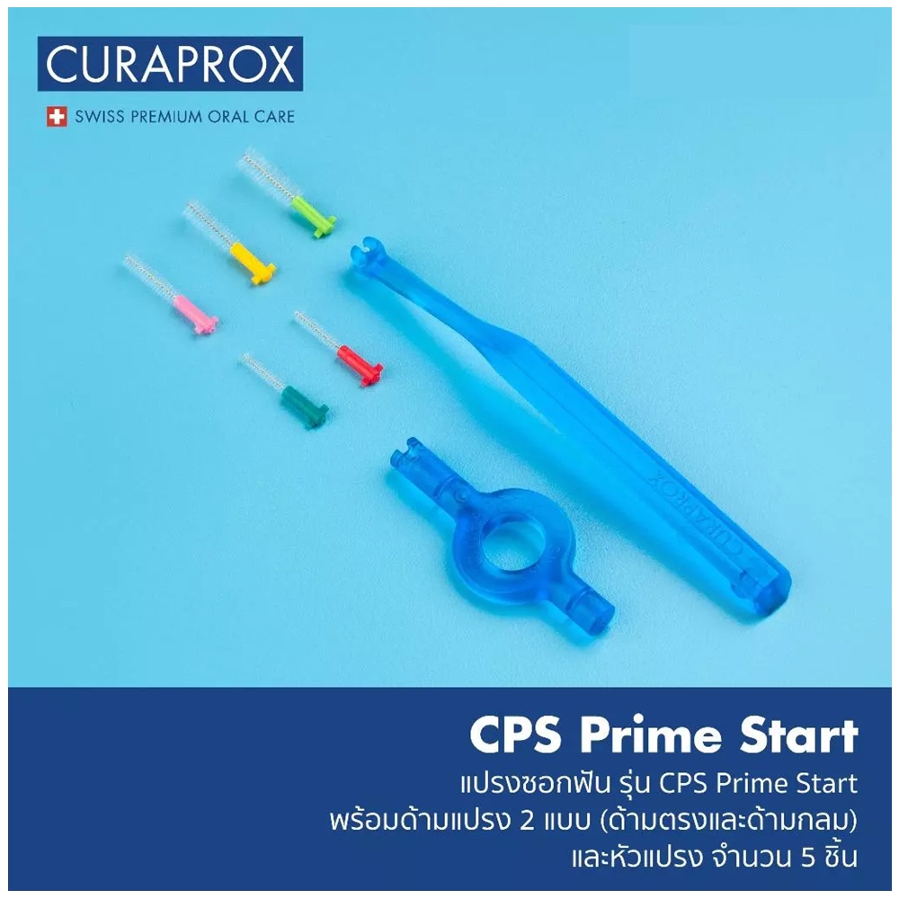 ใน 1 กล่อง ประกอบด้วย-แปรงซอกฟัน รุ่น CPS Prime Start มาพร้อมกับด้ามแปรง 2 แบบ (ด้ามตรงและด้ามกลม) และหัวแปรง จำนวน 5 ชิ้น