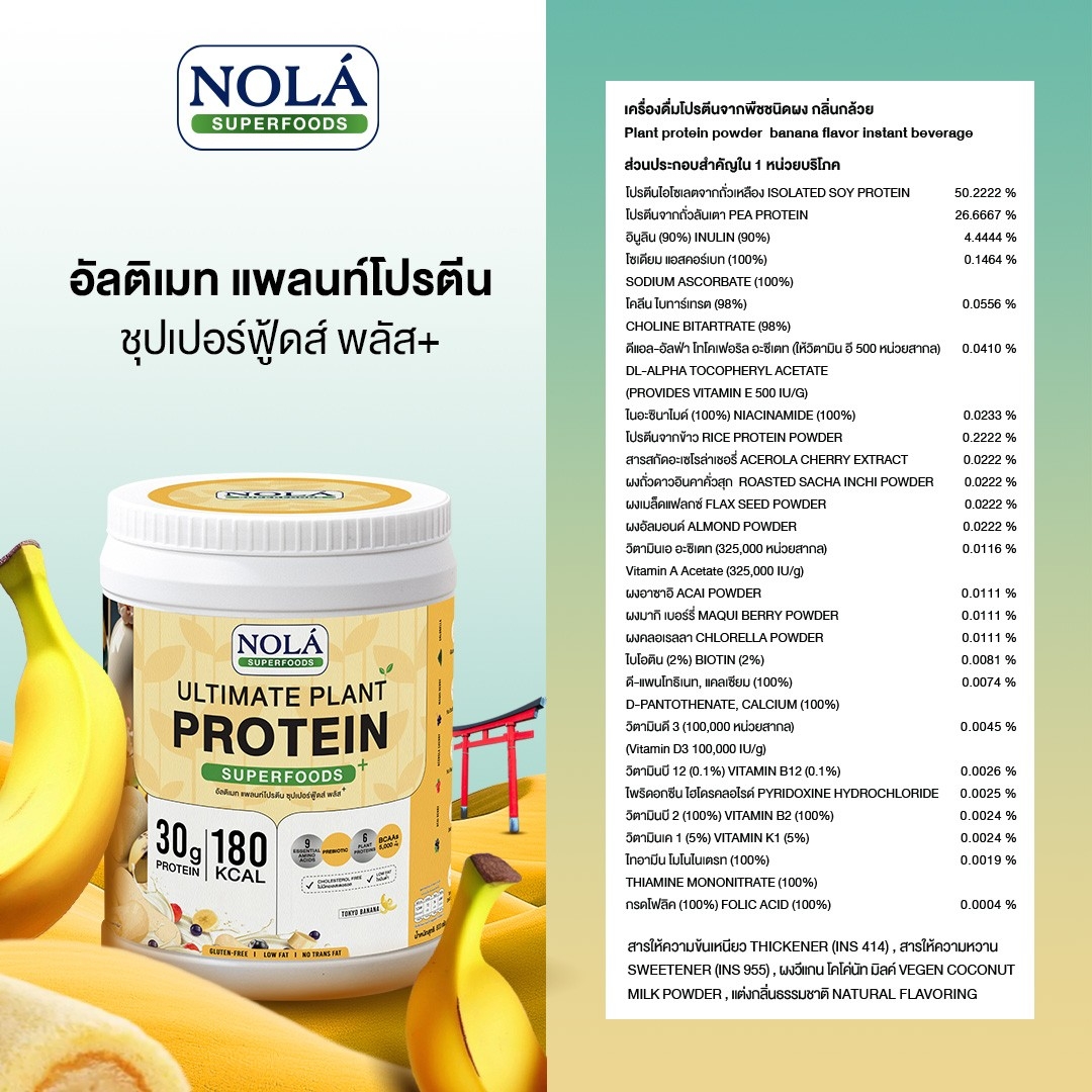 โนล่าอัลติเมทแพลนท์โปรตีน กลิ่นกล้วย 800 กรัม