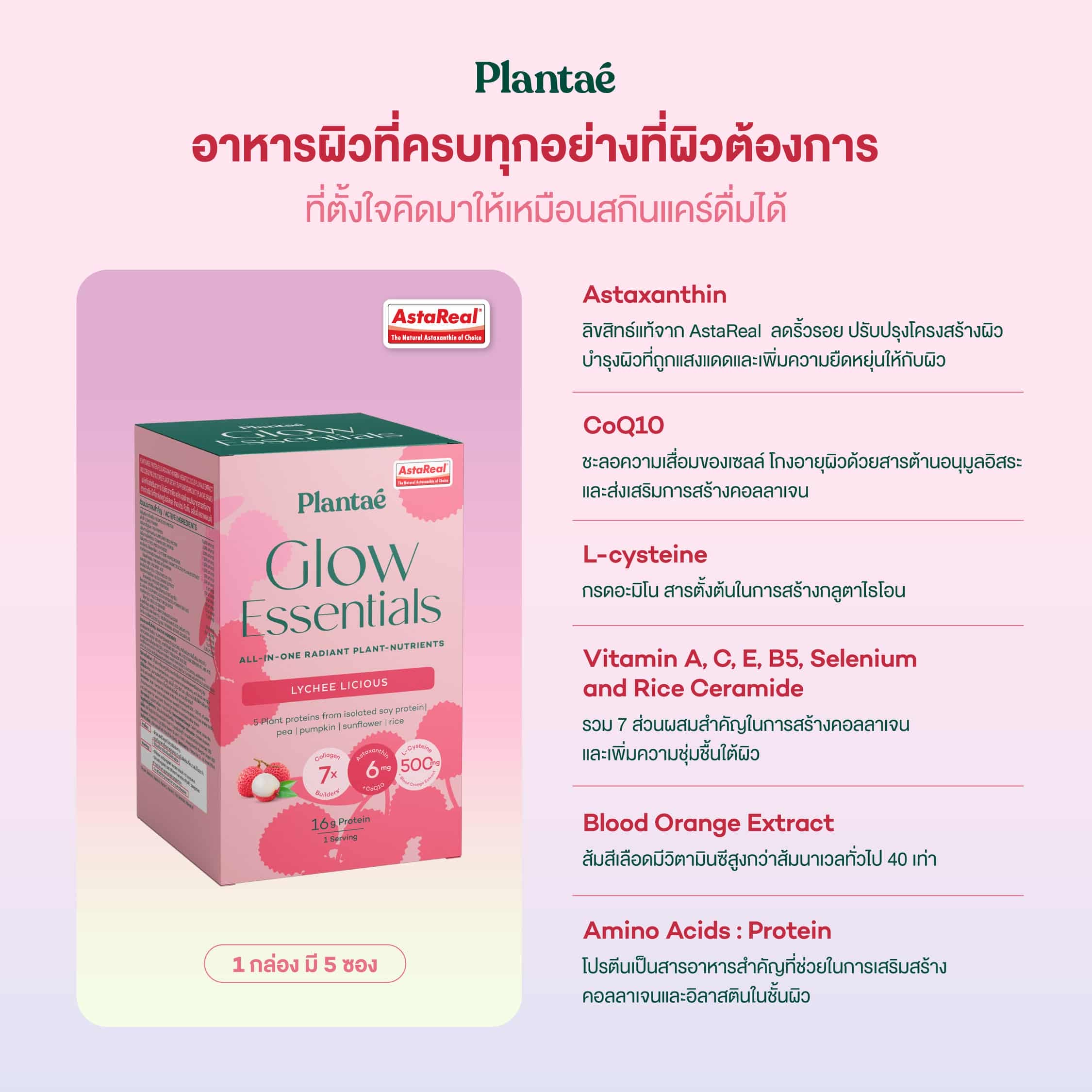 แพลนเต้โปรตีนโกล์วเอสเซนเชียล รสลิ้นจี่ 5 ซอง
