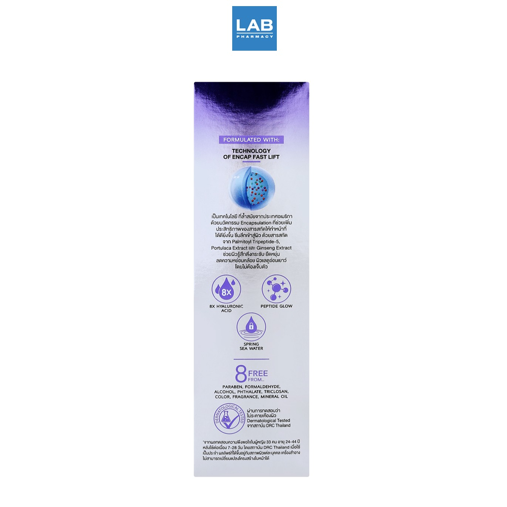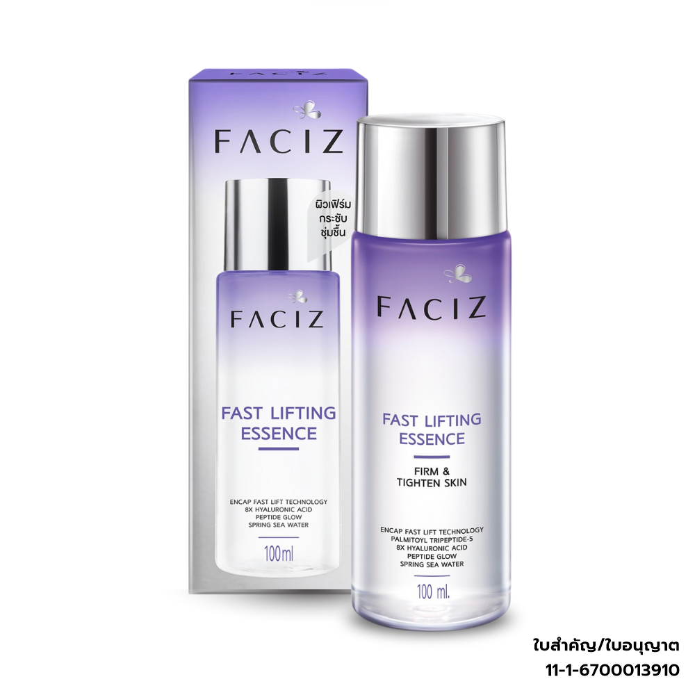 "เฟซิส ฟาสท์ ลิฟท์ติ้ง เอสเซนส์" ผสานรวมน้ำตบ โทนเนอร์ และ มาส์กให้ผิวรู้สึกเฟิร์มกระชับ ชุ่มชื้น ริ้วรอยแลดูจางลง รูขุมขนเล็กลงผิวเรียบเนียนขึ้นใน 7 วัน*- Encap Fast Lift Technology ประกอบด้วย Palmitoyl Tripeptide-5 ช่วยยกกระชับผิว ลดเลือนริ้วรอย- 8x Hyaluronic Acid เติมเต็มความชุ่มชื้น อย่างล้ำลึก ผิวแลดูเรียบเนียน มีสุขภาพดี- Peptide Glow เพิ่มให้ผิวหน้ากระชับ อ่อนเยาว์ ใสโกลว์ มีออร่า เมื่อใช้เป็นประจำ- Spring Sea Water น้ำแร่ธรรมชาติ จากประเทศฝรั่งเศส ล็อคความชุ่มชื้น คืนสมดุลให้ผิวแลดูสุขภาพดี*จากผลทดสอบความพึงพอใจในผู้หญิง 33 คน อายุ 24-44 ปี หลังใช้ต่อเนื่อง 7-28 วัน โดยสถาบัน DRC Thailandเมื่อใช้เป็นประจำ ผลลัพธ์ที่ได้ขึ้นอยู่กับสภาพผิวแต่ละบุคคล เครื่องสำอางไม่สามารถเปลี่ยนแปลงโครงสร้างใบหน้าได้ใบสำคัญ/ใบอนุญาต