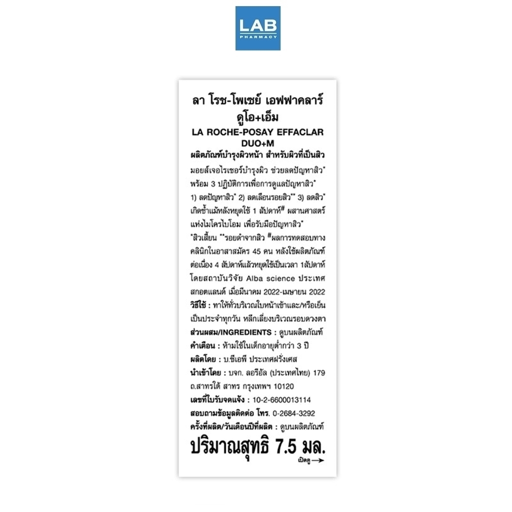 ลา โรช-โพเซย์ เอฟฟาคลาร์ ดูโอ+เอ็ม มอยซ์เจอไรเซอร์บำรุงผิวเป็นสิว ลดรอยสิว ดูแลผิวมีปัญหาสิว