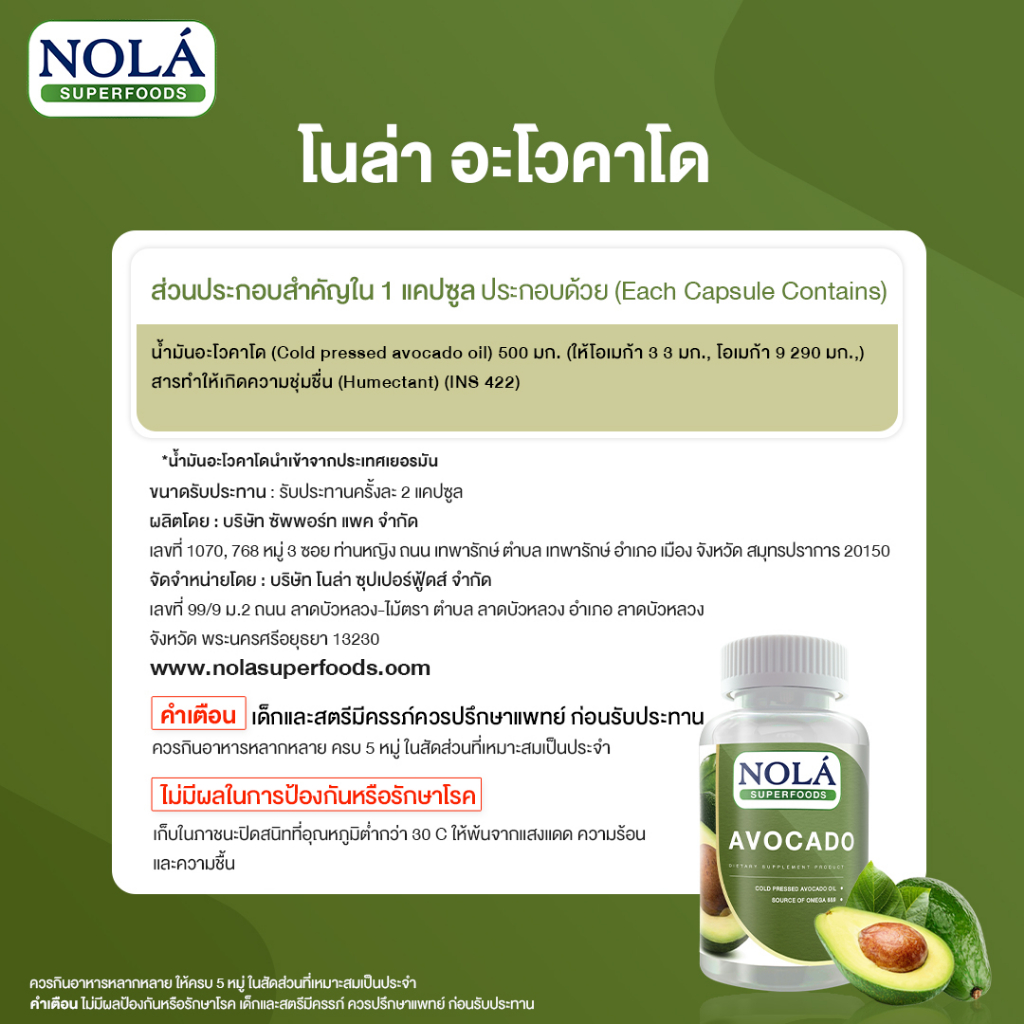 โนล่าน้ำมันอะโวคาโด สกัดเย็น ขนาด 60 วีแกนแคปซูล