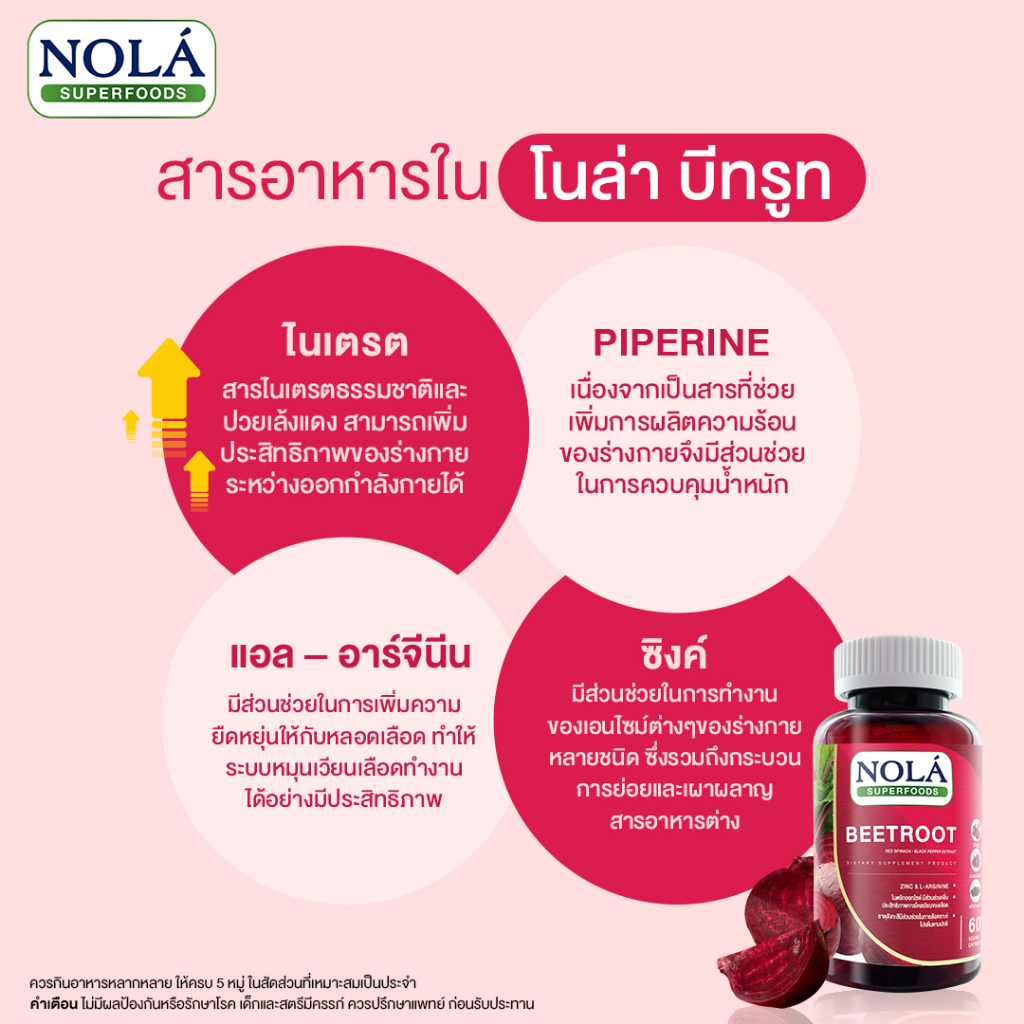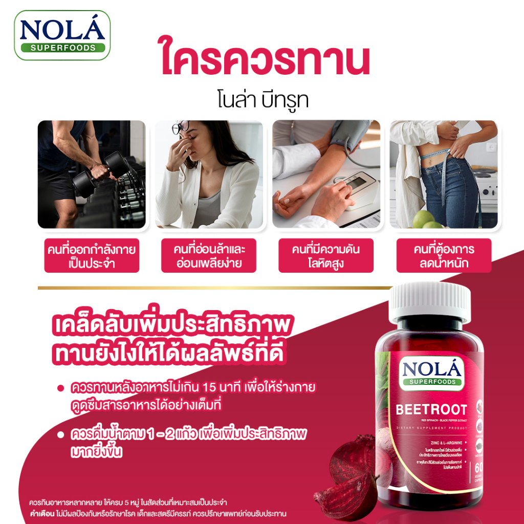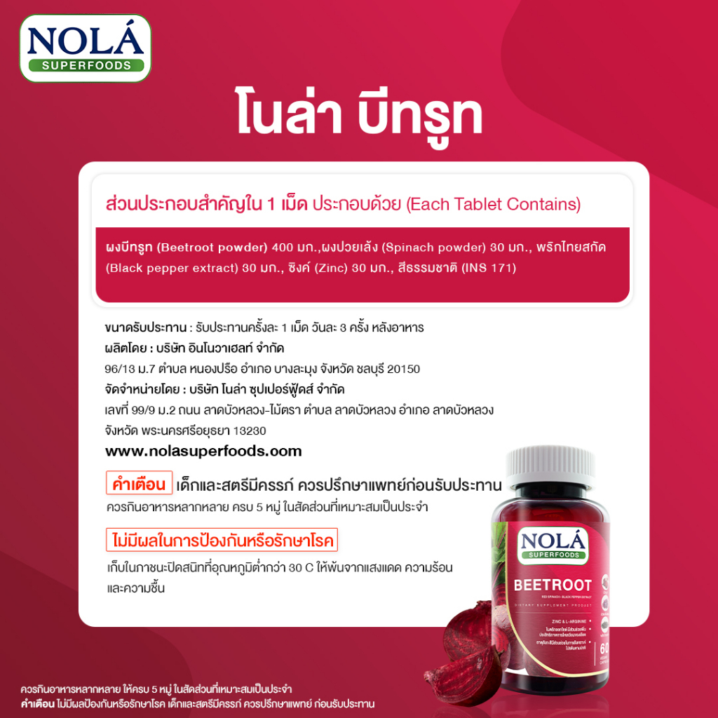 Nola Beetroot 60 Vegan Capsulesโนล่า บีทรูท ขนาด 60 วีแกนแคปซูลคุณสมบัติ