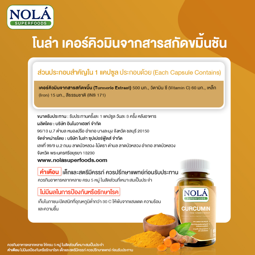 Nola Curcumin 60 Vegan Capsulesโนล่า เคอร์คิวมินจากสารสกัดขมิ้น 60 วีแกน Curcumin แคปซูล