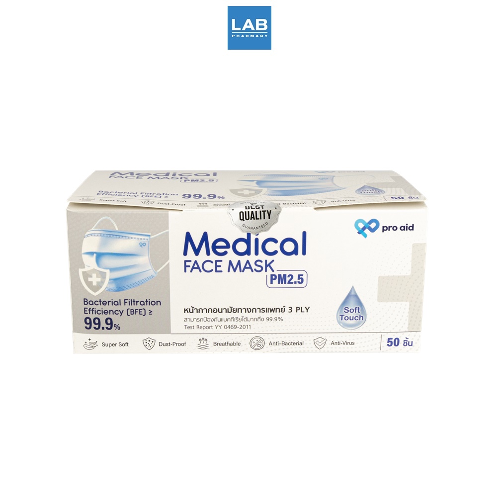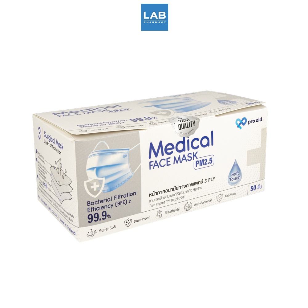 PRO AID MEDICAL FACE MASK White Box 50pcs หน้ากากอนามัยทางการแพทย์ 3 ชั้น สีขาว 1 กล่อง 50 ชิ้น