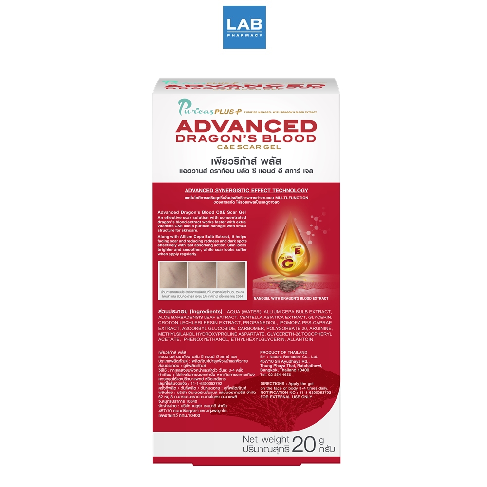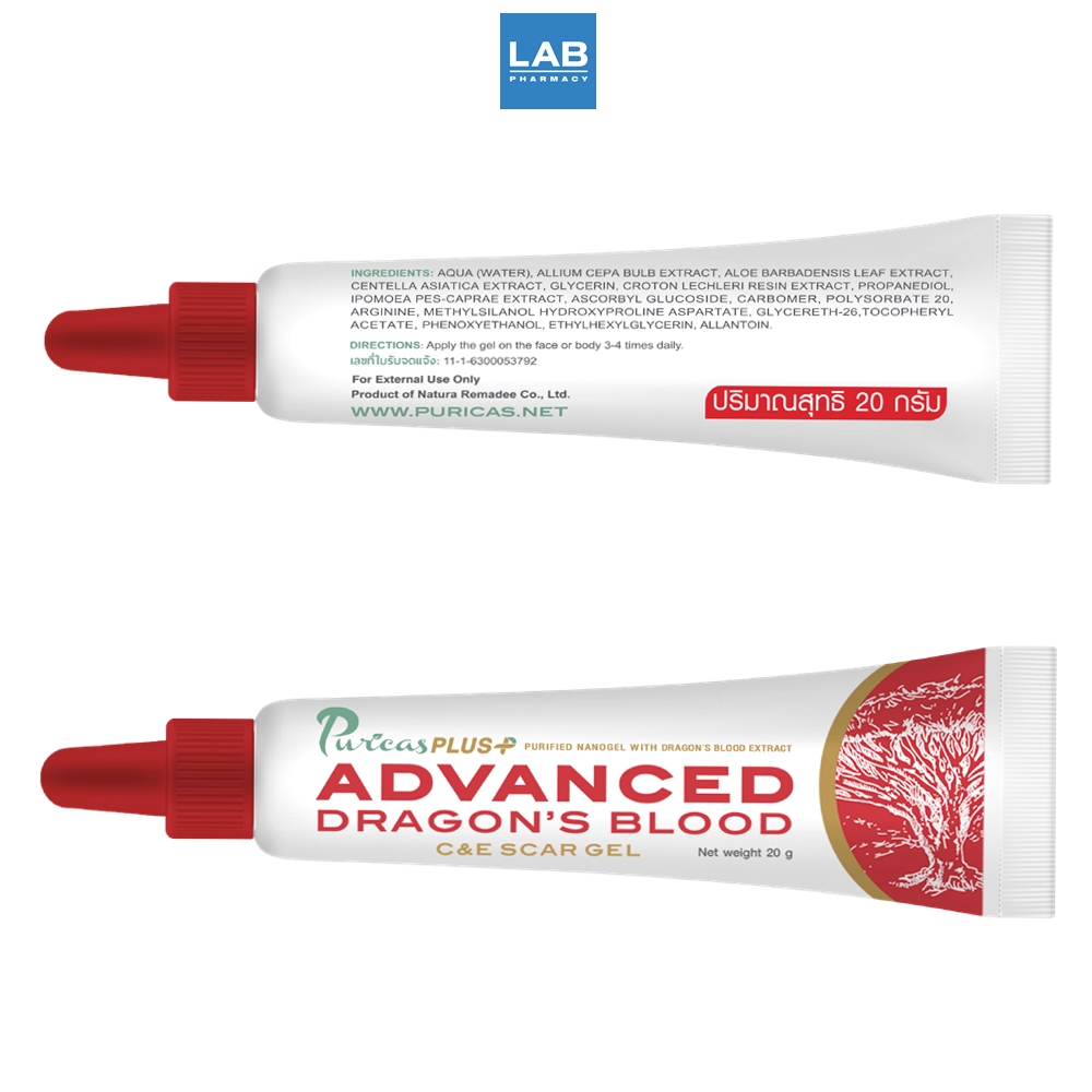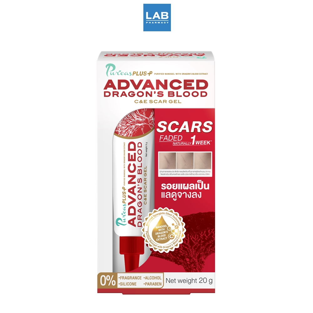 เพียวริก้าส์ พลัส แอดวานส์ ดราก้อน บลัด ซี แอนด์ อี สการ์ เจลลดรอยดราก้อนบลัด สูตรแอดวานส์ 1 หลอด บรรจุ 20 กรัม