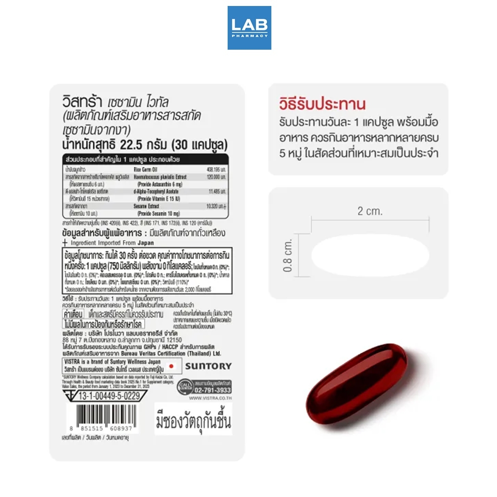 วิสทร้า เซซามิน ไวทัล 30 แคปซูล